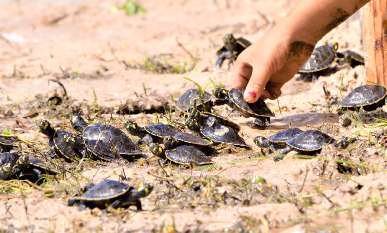 Parceria realiza soltura de 7 mil filhotes de tracajás