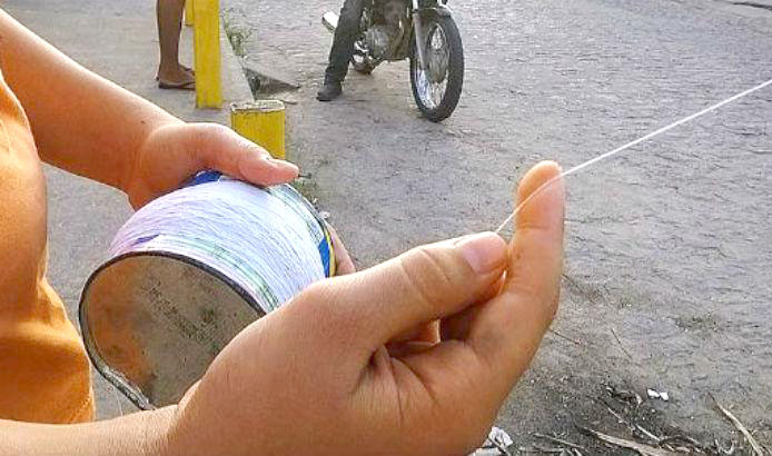 -preste atenção a motocicletas e bicicletas, porque a linha, mesmo sem cerol, é perigosa para os condutores