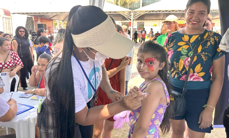 Para receber as crianças, o Zé Gotinha Marabaixeiro também levou a família. A programação contou ainda com serviços de cidadania, recreação, Certificado de Coragem, música e várias brincadeiras.