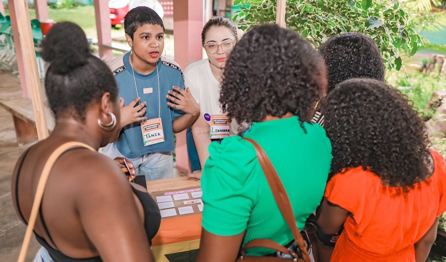 Durante as atividades, o Núcleo de Acolhimento às Mulheres Lésbicas, Bissexuais, Transexuais e Intersexuais (AMA-LBTI) levou, através de dinâmicas, conhecimentos sobre os serviços oferecidos e importância do respeito à diversidade.
