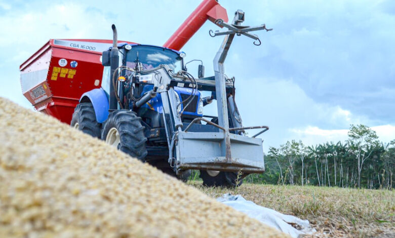 A colheita aconteceu em uma das três fazendas do grupo Agromix, que também possui produção em Porto Grande e Tartarugalzinho. Além de soja e milho, a empresa investe na piscicultura, criação de bubalinos, bovinos e suínos, e recentemente passou a trabalhar com bovinos puros da raça Nelore.