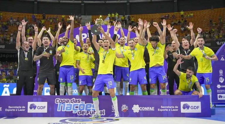 A seleção brasileira conquistou, no último domingo (21) no Ginásio Nilson Nelson, em Brasília, a Copa das Nações de Futsal. O título foi garantido após uma vitória pelo placar de 2 a 1 sobre a Polônia. Para garantir pela segunda vez na história o título da competição, o Brasil fez uma campanha com 100% de … Continue lendo Brasil conquista a Copa das Nações de Futsal