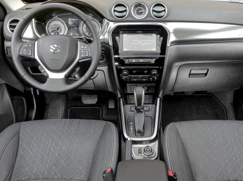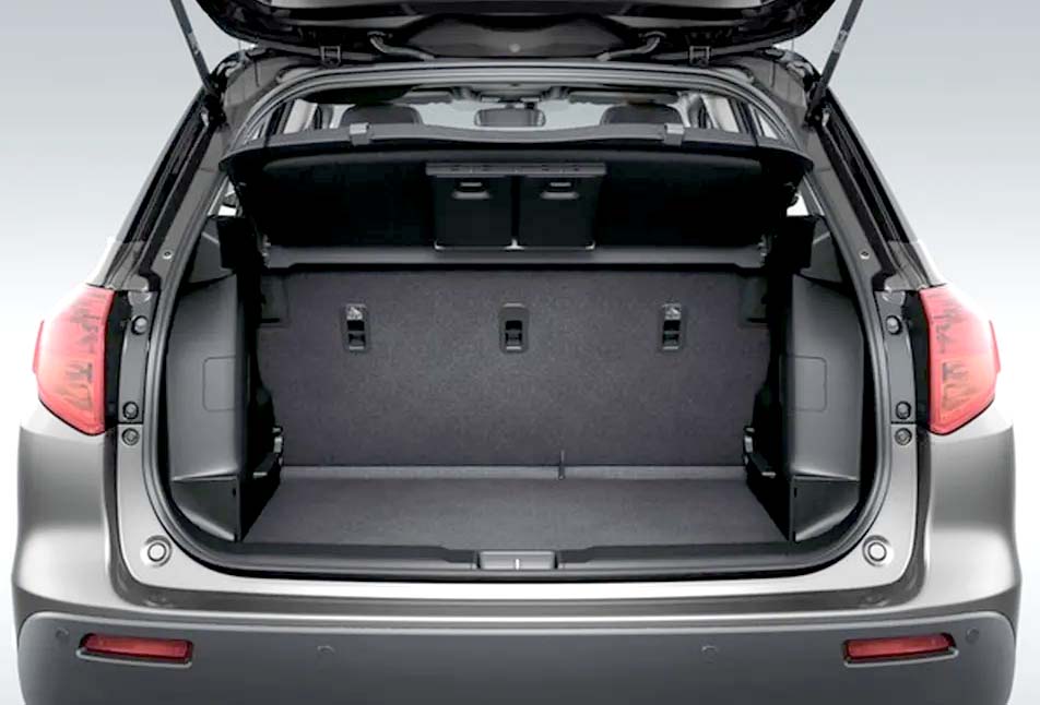 Com 4,17 metros de comprimento e 2,50 metros de entre-eixos, o Suzuki Vitara é um SUV compacto ágil para a cidade. Seu porta-malas de 375 litros é superior ao de rivais diretos como o Jeep Renegade (320 litros) e oferece um prático assoalho de dois níveis. Para quem precisa de mais capacidade, o modelo pode rebocar até 1.200 kg (com freio), um número impressionante para seu porte. A aptidão para terrenos irregulares é reforçada pelos 185 mm de altura livre do solo e bons ângulos de entrada (20º) e saída (29º).