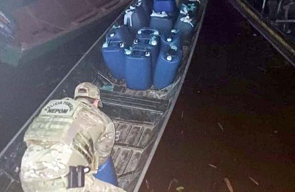 Os homens foram surpreendidos transportando 600 litros de óleo diesel e 300 litros de gasolina em uma catraia. Ao serem abordados, confessaram que levavam o combustível para armazená-lo na residência de um deles, situada em um igarapé no Oiapoque, até receberem autorização do comprador para levá-lo ao garimpo. Com a autorização, fariam a exportação do combustível para garimpos na Guiana Francesa, sem qualquer registro ou permissão legal.