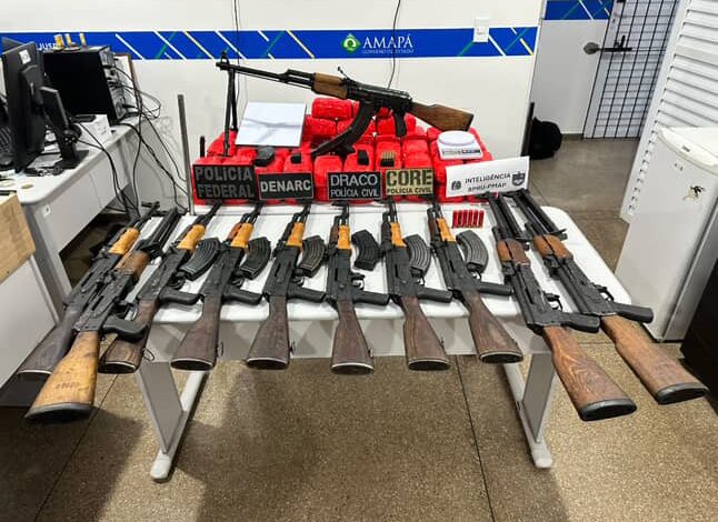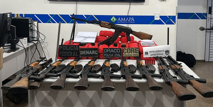 O material estava escondido em uma área ribeirinha entre os municípios de Mazagão e Santana. As armas estavam dentro de sacos pretos, enquanto a droga foi localizada em uma caixa de isopor.
