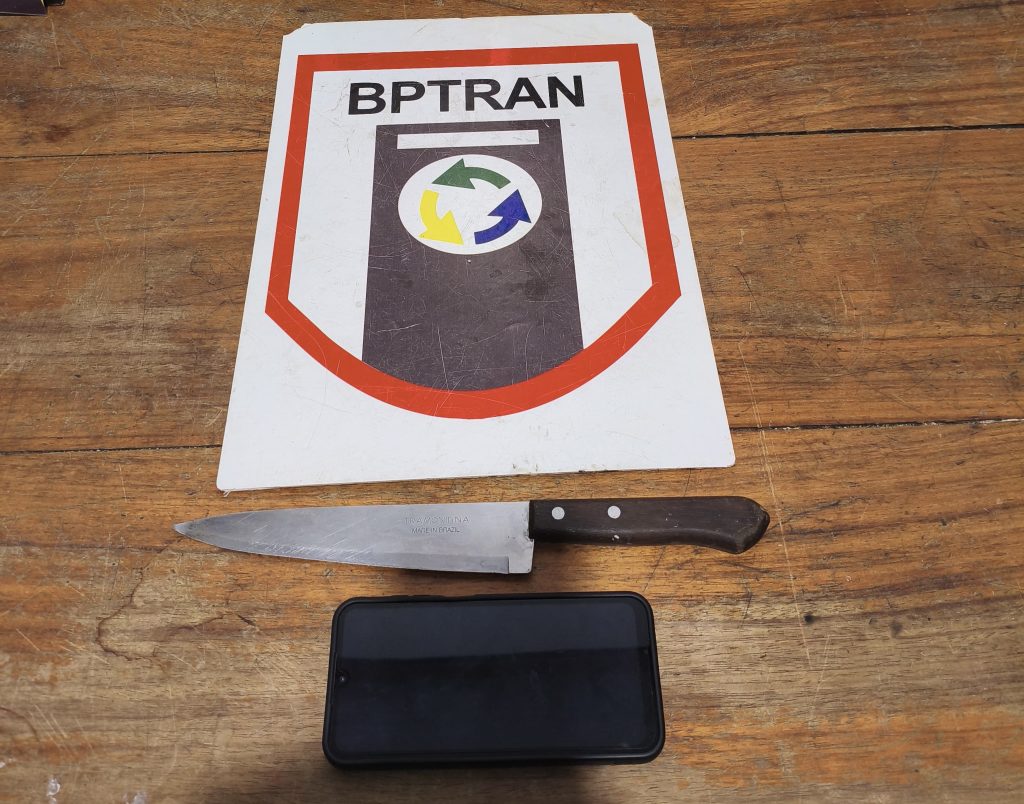 Uma equipe do Batalhão de Trânsito da Polícia Militar (BPTran) prendeu um homem suspeito de cometer um roubo com uso de arma branca na área central de Macapá, na noite desta quarta-feira (29).