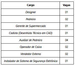 As vagas são destinadas a candidatos com diferentes níveis de experiência e formação, oferecendo oportunidades tanto para quem busca o primeiro emprego quanto para profissionais mais experientes.