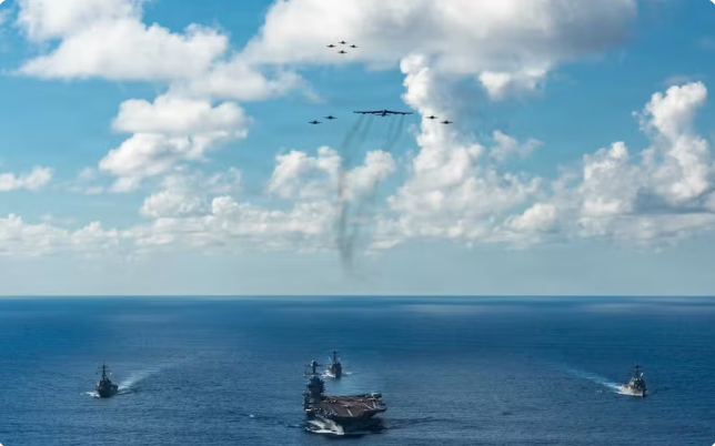 A movimentação militar inclui o deslocamento para a região do grupo de ataque do porta-aviões USS Gerald R. Ford, o maior do mundo, que já se encontra em águas próximas à América Latina. A presença do navio é vista como uma demonstração direta de força em direção à Venezuela.