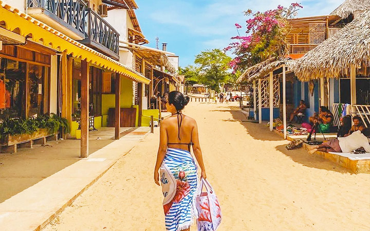 As ruas de areia, a ausência de carros comuns e a proximidade do mar criam uma sensação de liberdade rara nos grandes centros urbanos.