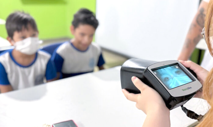A ação começou com uma semana de triagens direto nas escolas, utilizando um autorefrator portátil, um equipamento que avalia a visão a um metro de distância, sem necessidade de dilatação da pupila e sem contato físico. A tecnologia torna o processo mais rápido, confortável e preciso.