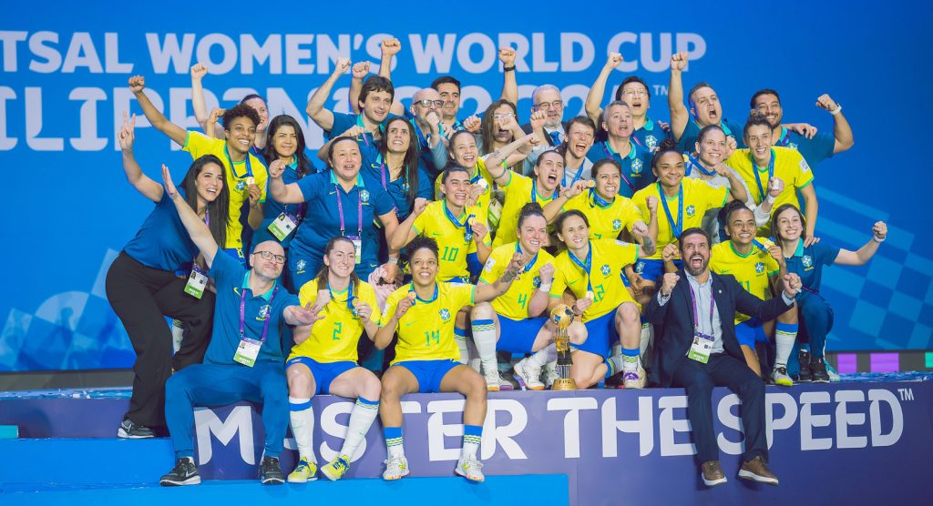 O Brasil é campeão mundial de futsal feminino. Na manhã deste domingo (7), a seleção bateu Portugal por 3 a 0 e ficou com o título em Manila, nas Filipinas. A equipe fechou essa, que foi primeira Copa do Mundo Feminina de Futsal organizada pela Fifa, com 100% de aproveitamento.