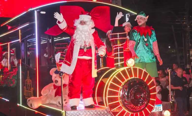 A programação inclui apresentações culturais, corais natalinos, feira empreendedora, praça de alimentação, desfile temático, chegada do Papai Noel, além da entrega de brinquedos para crianças e o sorteio de 1.530 cestas natalinas.