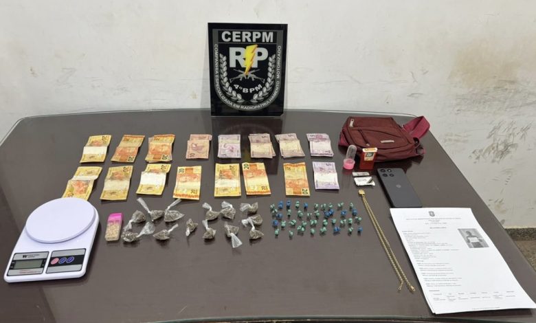 Após consulta aos sistemas, foi confirmado que o homem não havia retornado ao presídio após saída temporária, passando a ser considerado foragido da Justiça. Ainda durante a averiguação, foram encontrados entorpecentes já embalados para venda, uma balança de precisão e uma quantia em dinheiro.
