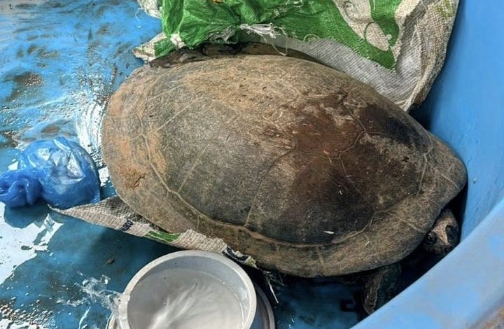 A ocorrência foi atendida no dia 18 de dezembro. Após o resgate, a tartaruga foi transportada até a capital, Macapá, onde passou pelos procedimentos iniciais de segurança e avaliação. Em seguida, o animal foi entregue à direção do Museu Sacaca, instituição devidamente habilitada para receber, cuidar e realizar a análise técnica de fauna silvestre.