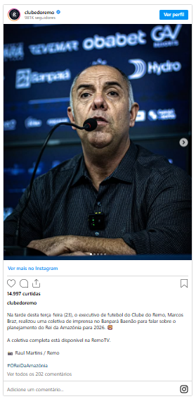 Ele reafirma seu papel no Remo em 2026, destacando a importância do acesso à Série A e a necessidade de estruturação do clube para o futuro