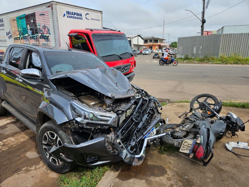 Motociclista é atingido após colisão entre caminhão e picape em Macapá