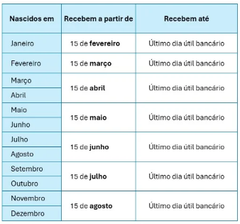 Os pagamentos do PIS/Pasep começam em 15 de fevereiro e serão ao todo sete lotes. O valor é proporcional ao tempo de serviço do trabalhador no ano-base. O cálculo do valor do benefício corresponde ao número de meses trabalhados no ano-base multiplicado por 1/12 do valor do salário mínimo vigente na data do pagamento.