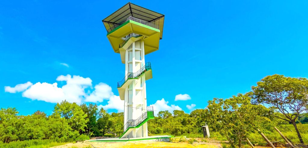 O mirante possui 20,15 metros de altura e oferece uma visão panorâmica do parque e do entorno. A estrutura conta com torre de elevador, corrimãos nas escadarias e pilares de sustentação reforçados, garantindo acessibilidade e segurança aos visitantes.