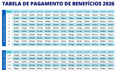 O cronograma de pagamentos é dividido pelo valor do benefício e pelo número final do cartão: