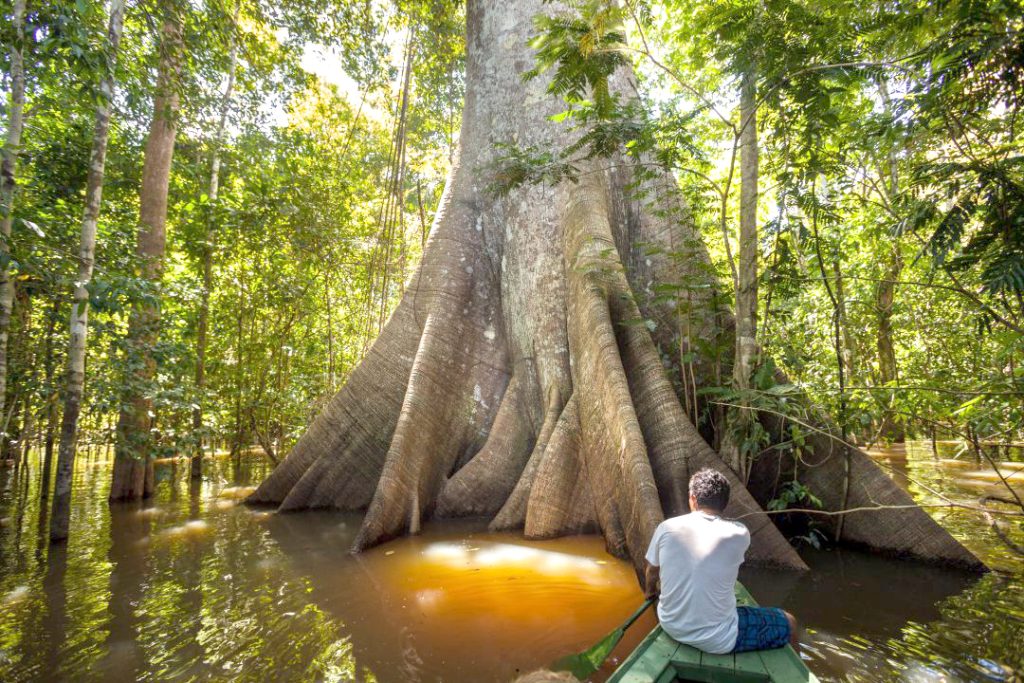 Com até 60 metros de altura, tronco que armazena água e vapores que ajudam a manter a umidade do ar, a sumaúma amazônica funciona como uma “torre viva” da selva e influencia o clima ao redor da floresta