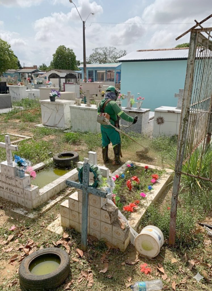 Os trabalhos incluem a retirada de resíduos sólidos, capinação, limpeza de áreas com acúmulo de água e orientação para o descarte correto de recipientes que possam se tornar criadouros do mosquito, especialmente vasos e outros objetos deixados sobre os túmulos.