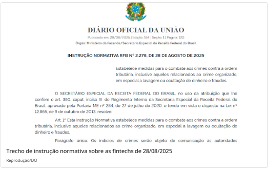 “Essa Instrução Normativa é essencial para evitar que fintechs voltem a ser utilizadas por organizações criminosas para lavagem de dinheiro e ocultação de patrimônio, como vimos na Operação Carbono Oculto”, afirma a Receita.