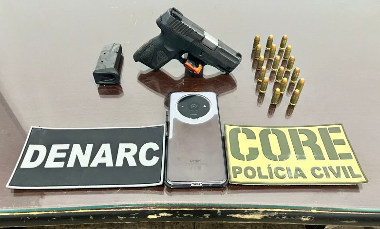 Durante a abordagem, o homem tentou se desfazer do armamento, mas foi rapidamente contido pelos policiais civis. Com ele, foi apreendida uma pistola calibre .40, modelo G2C, além de 17 munições do mesmo calibre e um segundo carregador, que estavam no interior da residência onde o suspeito se encontrava.