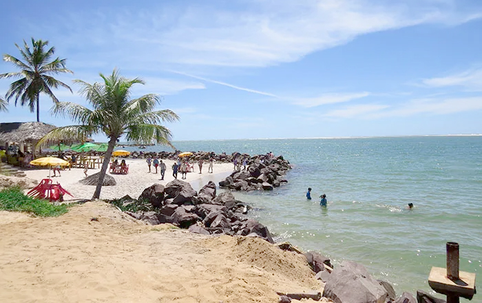 Refúgio tranquilo na costa cearense, a cerca de 190 quilômetros de Fortaleza, o vilarejo tem praias longas e quase desertas, perfeitas para caminhar, relaxar e praticar esportes como kitesurf. A vantagem é que destino não possui a muvuca de outras praias mais populares. A faixa de areia central faz barreira com a Barra das Moitas, com um mar esverdeado que enche os olhos. Funciona para famílias com crianças pela segurança das águas e espaço amplo para brincar. Por ali também é possível realizar passeios de bugue.