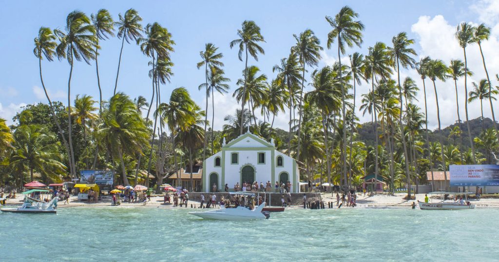 O visual inconfundível da capelinha de São Benedito à beira-mar é um dos cenários mais memoráveis da Praia dos Carneiros, dotada de coqueiros e de uma água cristalina morninha. A areia branca e a brisa ajudam a impulsionar o cenário paradisíaco, lar de alguns hotéis e pousadas com bangalôs. Pertencente ao município de Tamandaré, a praia fica a cerca de 90 quilômetros do aeroporto do Recife e tem um dos Réveillons mais disputados do Nordeste, mas encanta viajantes o ano inteiro.