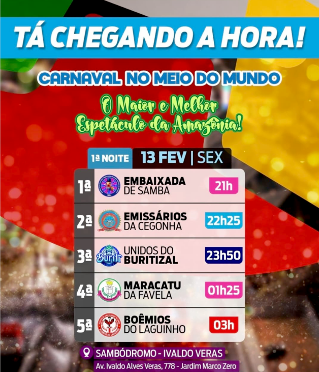 Início/Carnaval/Carnaval 2026: Desfiles no Sambódromo começam nesta sexta-feira (13); Confira ordem das escolas Banner principalCarnaval Carnaval 2026: Desfiles no Sambódromo começam nesta sexta-feira (13); Confira ordem das escolas Há 2 horasÚltima Atualização 13 de fevereiro de 2026 12 Compartilhar Facebook X Linkedin Messenger Messenger WhatsApp Telegram Compartilhar via e-mail Há 2 horasÚltima Atualização 13 de fevereiro de 2026 12 Compartilhar Facebook X Linkedin Messenger Messenger WhatsApp Telegram Compartilhar via e-mail Mostrar mais Compartilhar Facebook X Linkedin Messenger Messenger WhatsApp Telegram Compartilhar via e-mail