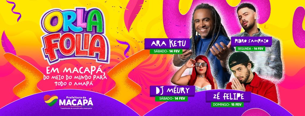 A Prefeitura de Macapá realiza, de 13 a 16 de fevereiro, o Orla Folia, na Orla do Santa Inês, com atrações nacionais e locais em trios elétricos e palco, integrando a programação do Carnaval 2026 e movimentando a cultura, o lazer e a economia da capital