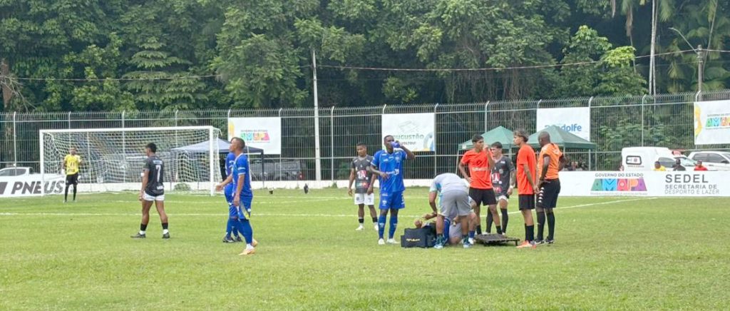 Em jogada de lançamento do Oratório, “Chocolate” levou a pior durante a dividid’a e precisou de atendimento médico.
