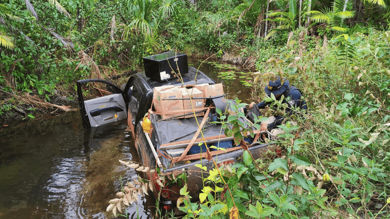 Durante a abordagem, o condutor de uma caminhonete desobedeceu à ordem de parada e acessou um ramal nas proximidades da rodovia. O veículo foi localizado logo em seguida, quando então foi realizada a verificação da carga transportada.