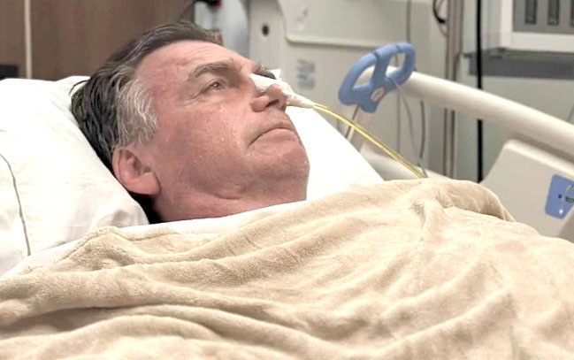 Bolsonaro está internado desde sexta-feira (13), para tratamento de uma pneumonia grave nos dois pulmões.