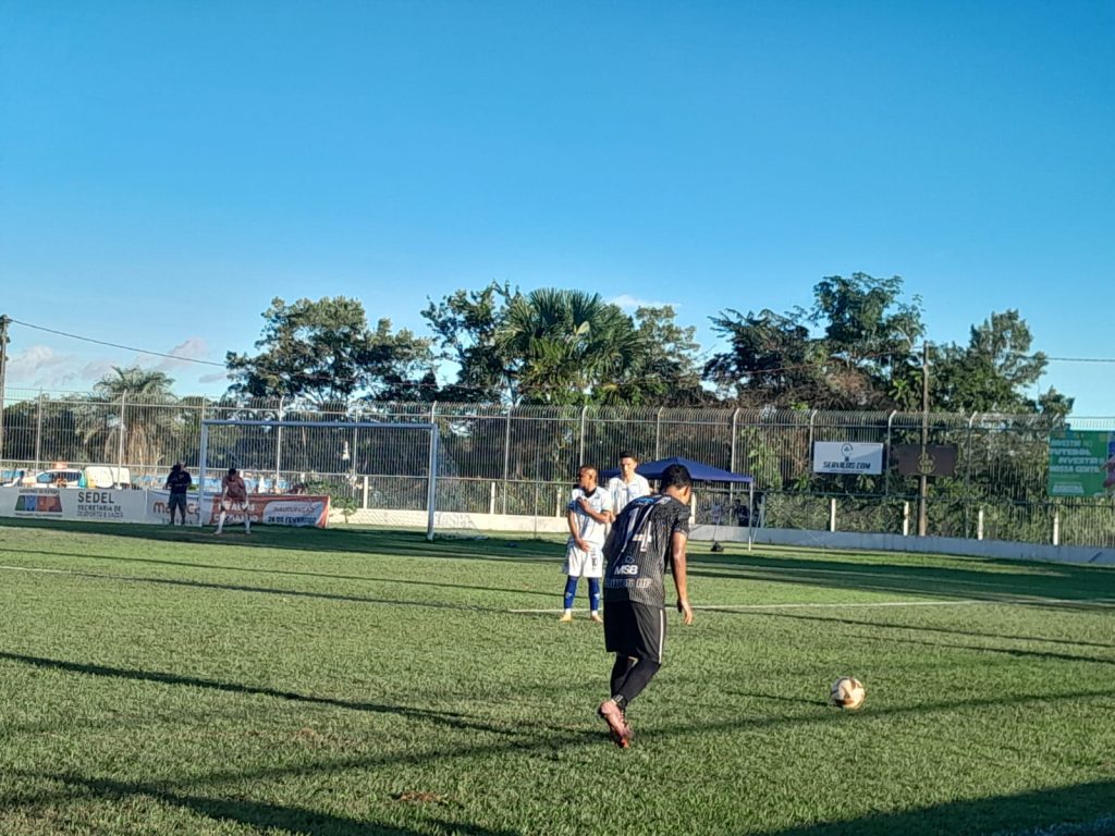 36′: Na volta da parada técnica, falta para o Oratório. Fabinho (3) chuta com perigo e a bola passa pelo lado esquerdo do goleiro Rômulo