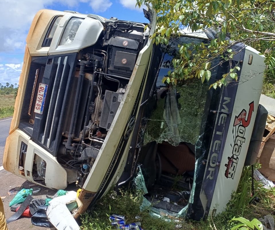 Um grave acidente envolvendo uma carreta deixou duas pessoas gravemente feridas na BR-156, no município de Calçoene, no Amapá. O sinistro ocorreu no km 603 da rodovia, e foi do tipo tombamento.