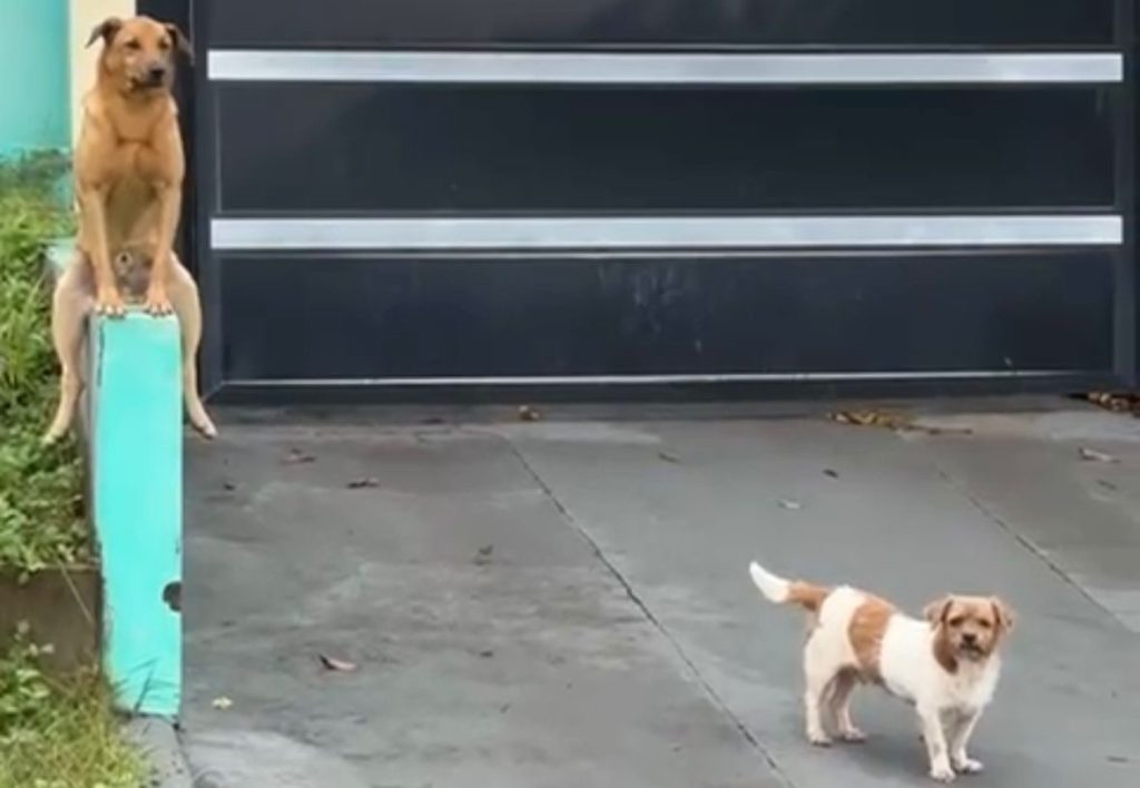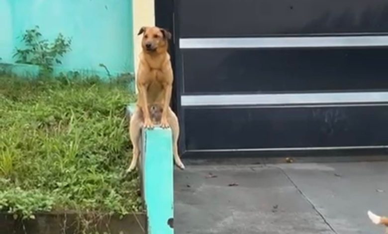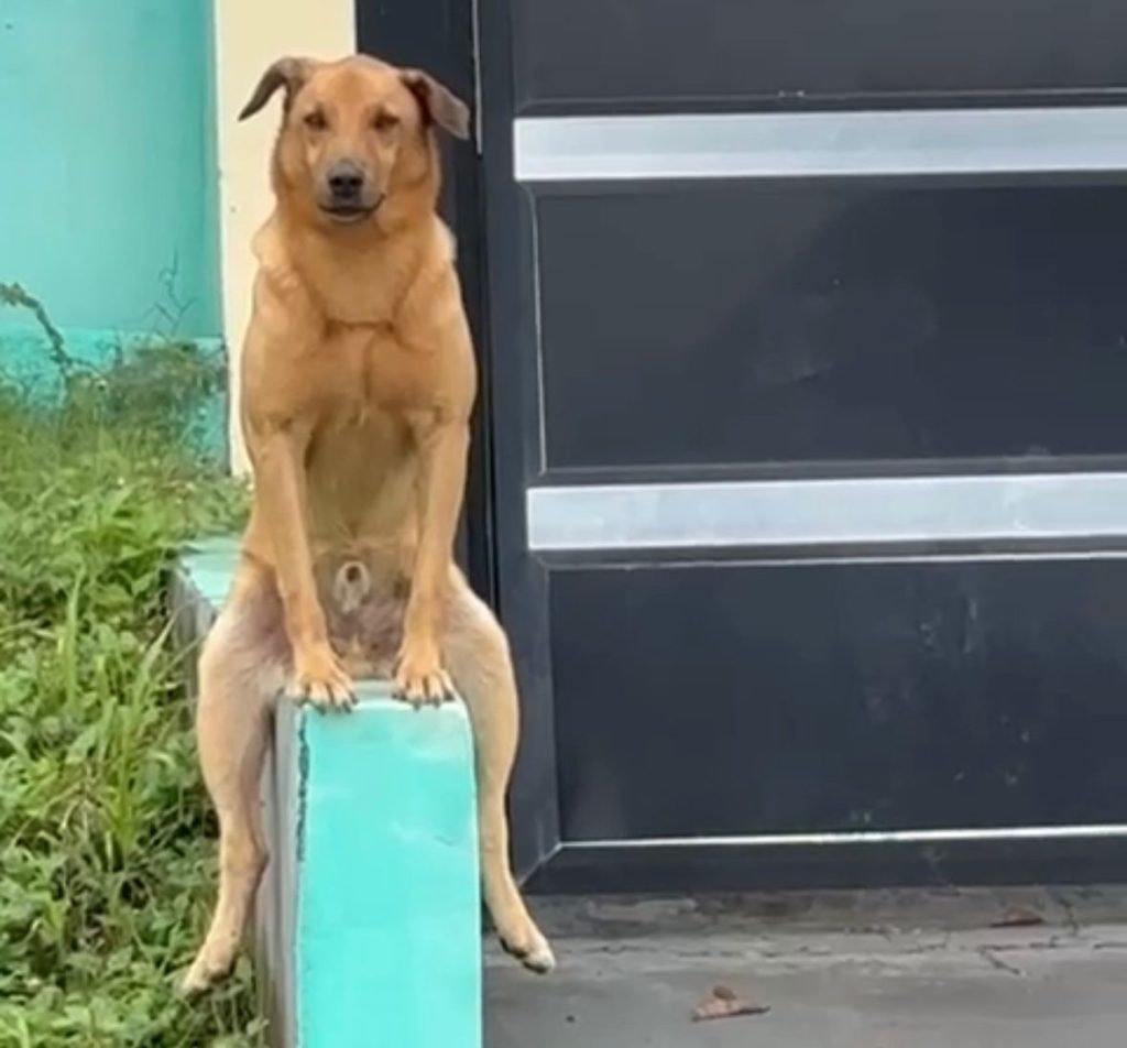 Um momento inusitado e cheio de fofura chamou a atenção de moradores de Santana, no Amapá. Após uma chuva, um cachorro foi flagrado sentado tranquilamente na mureta de uma residência, como se estivesse apenas observando o movimento da rua.