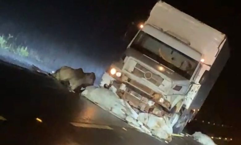 Um caminhão colidiu frontalmente com bois que atravessavam a BR-156, no município de Tartarugalzinho, no Amapá. O caso ocorreu na madrugada deste domingo (5), por volta das 2h, no km 450 da rodovia.