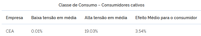 O efeito médio da alta tensão refere-se às classes A1 (>= 230 kV), A2 (de 88 a 138 kV), A3 (69 kV) e A4 (de 2,3 a 25 kV). Para a baixa tensão, a média engloba as classes B1 (Residencial e subclasse residencial baixa renda); B2 (Rural: subclasses, como agropecuária, cooperativa de eletrificação rural, indústria rural, serviço público de irrigação rural); B3 (Industrial, comercial, serviços e outras atividades, poder público, serviço público e consumo próprio); e B4 (Iluminação pública).