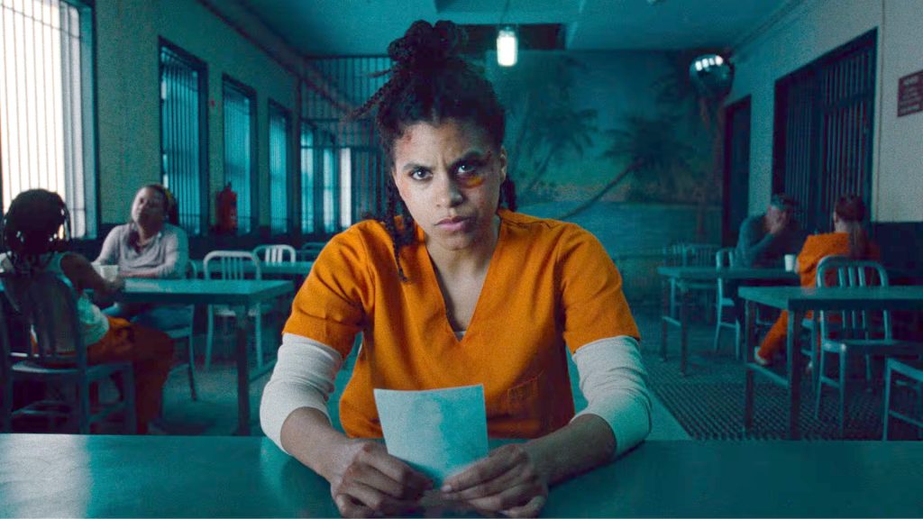 E não me entenda mal. As referências são ótimas. E se juntam ainda a uma pitada de Blaxxploitation, afinal, estamos vendo uma mulher negra chutando todas as bundas que aparecem na sua frente. E que bom que Zazzie Beets segura a onda na pancadaria e parece ter se divertido muito no processo. Mas, também, como não se divertir quando se está sendo perseguida por… um olho. Literalmente.