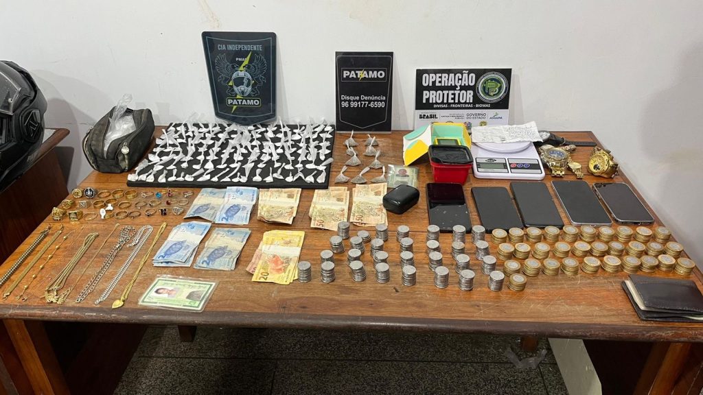 Com as informações, os policiais seguiram até uma casa nas proximidades, onde encontraram mais quatro pessoas. Durante a abordagem, foram apreendidas outras porções de drogas com os suspeitos. Um dos homens assumiu participação no esquema, dizendo que fazia entregas e recolhia o dinheiro das vendas, inclusive via PIX. Já uma mulher contou que buscava entorpecentes em outros bairros e que tinha acabado de chegar com droga do Brasil Novo. Outro suspeito estava com R$ 300 e também admitiu envolvimento na venda.