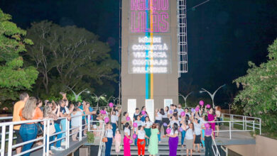 “Agosto Lilás” ilumina Monumento Marco Zero em campanha de combate à violência contra a mulher